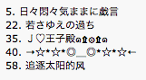 Nearly a fifth of the total, a dozen weblogs in all—or at any rate I think they’re weblogs—are located at spaces.msn.com, which must be making it cheap and easy to get on. I can’t make out most of their names, or the titles of their weblogs, but most of them give their location:(If someone wants to tell me how to make the Chinese and Japanese names display properly, I’ll be grateful.)1. the Blue or the other Blue, Taiwan. 5. 日々��々気ままに戯言, Chiba-ken, Japan.