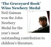 —to Neil Gaiman for winning “what is widely considered the most prestigious honor in children’s literature,” the Newbery Medal, for The Graveyard Book.